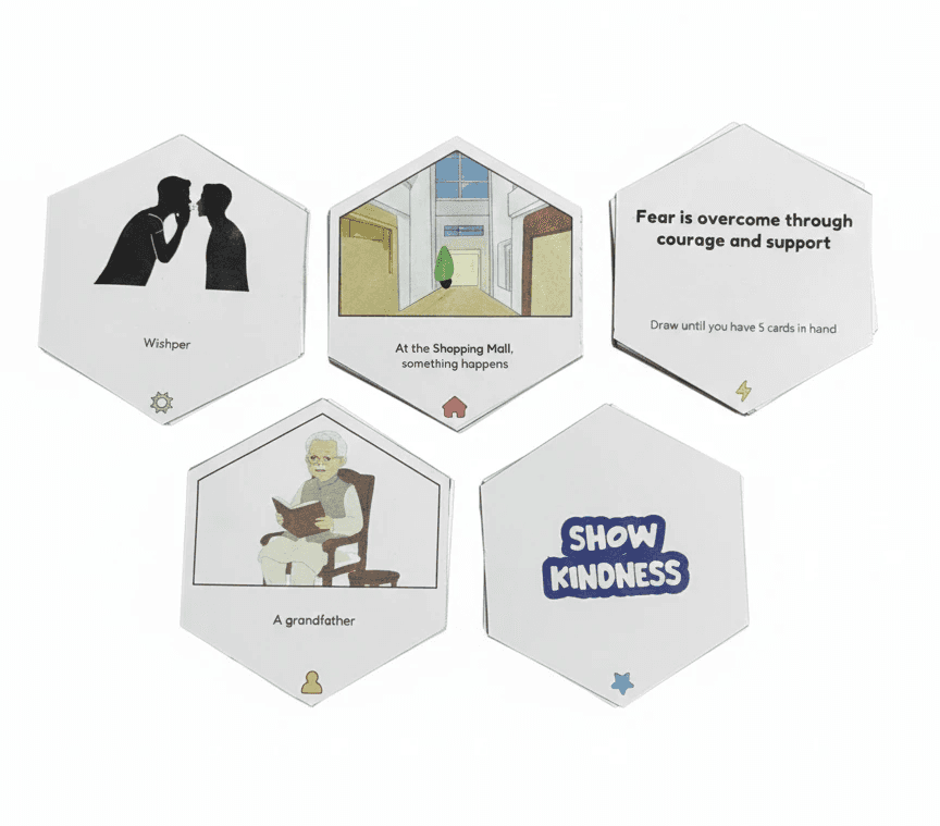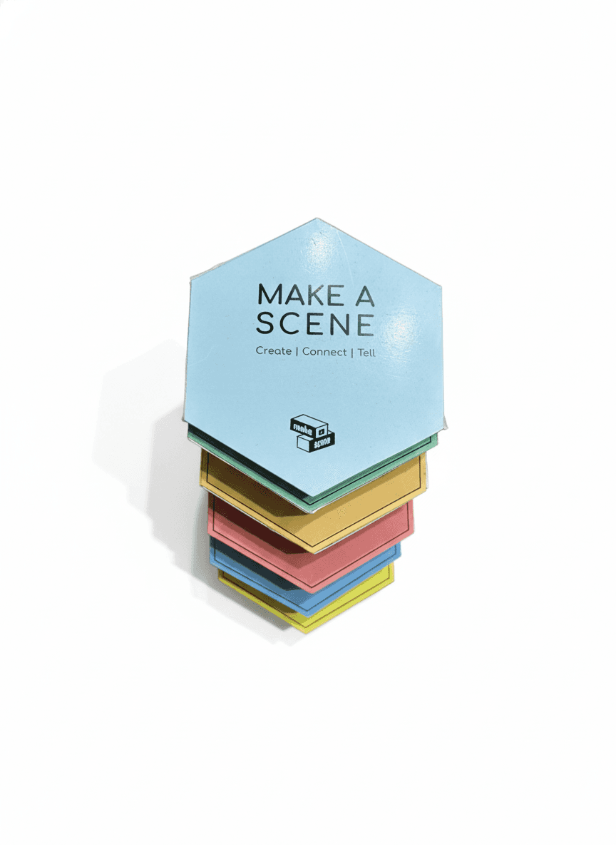 Make a Scene is an engaging game inviting families to co-create character-driven narratives, discover hidden values, and spark multi-generational conversations. Drawing from Indian visual culture, it blends traditional storytelling with modern mechanics for playful preservation, connection, and shared joy